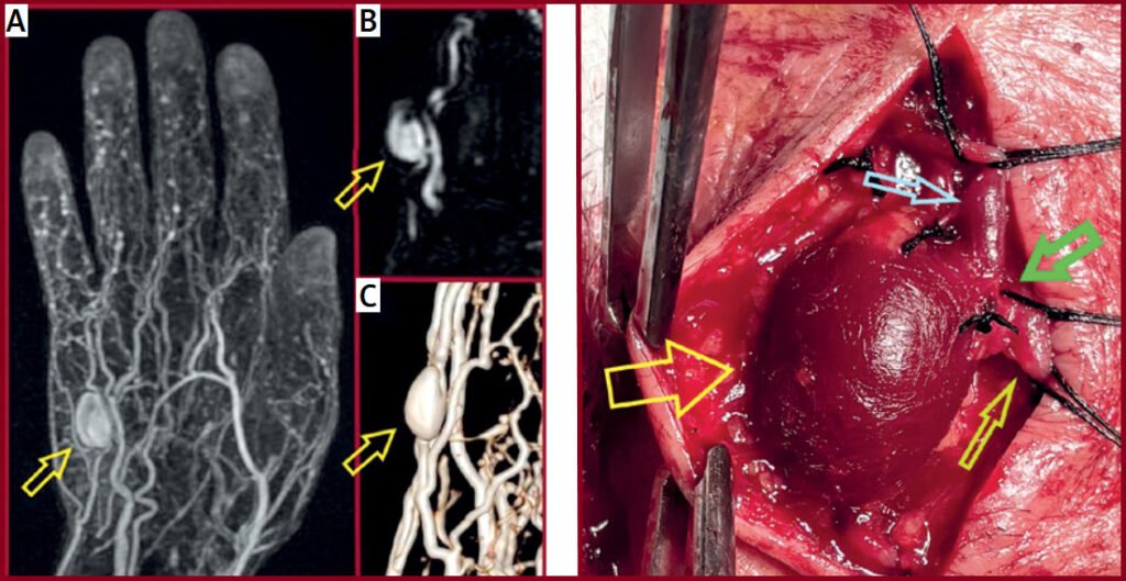 mainly of traumatic or iatrogenic origin. Idiopathic true brachial artery aneurysms are even